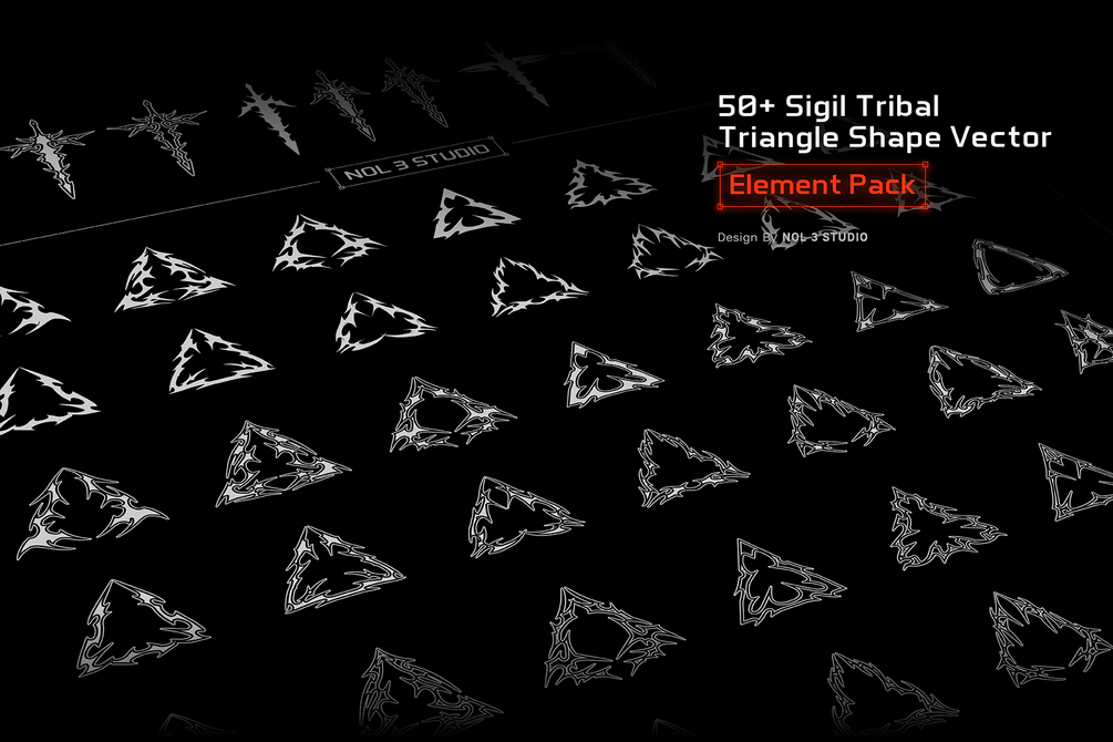 50+ Sigil Tribal Triangle Vector - Element pack is a collection of ready-to-use graphic element assets to fulfill graphic design needs, suitable for graphic design of device decorations or sports apparel with a dark futuristic cyber theme.