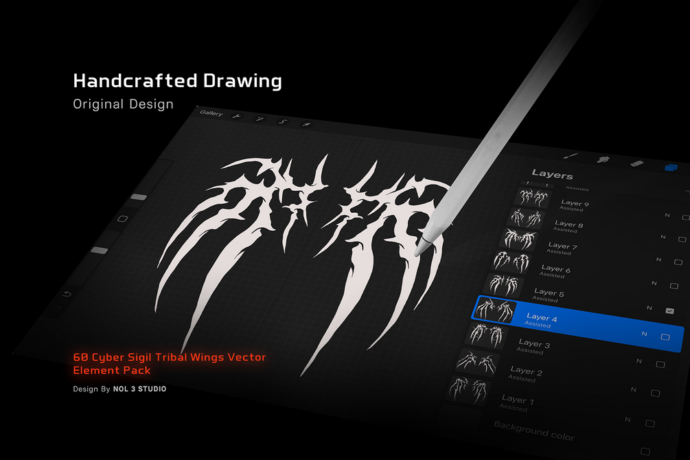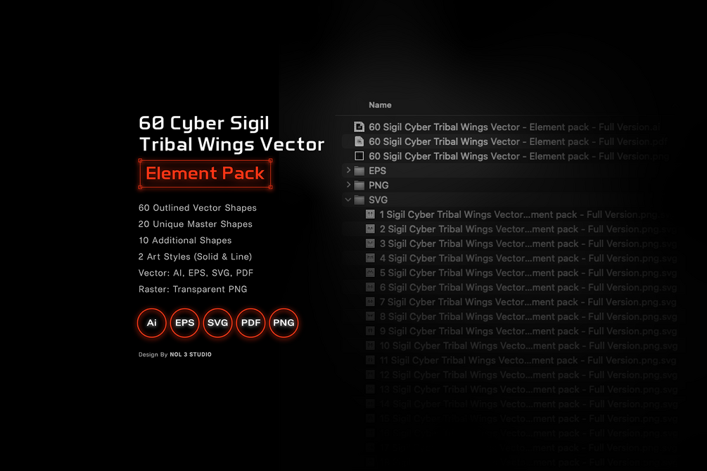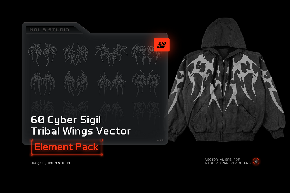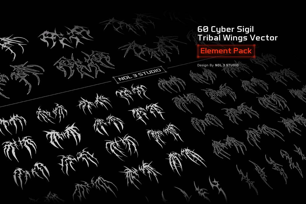 60 Cyber Sigil Tribal Wings Vector | Element pack
