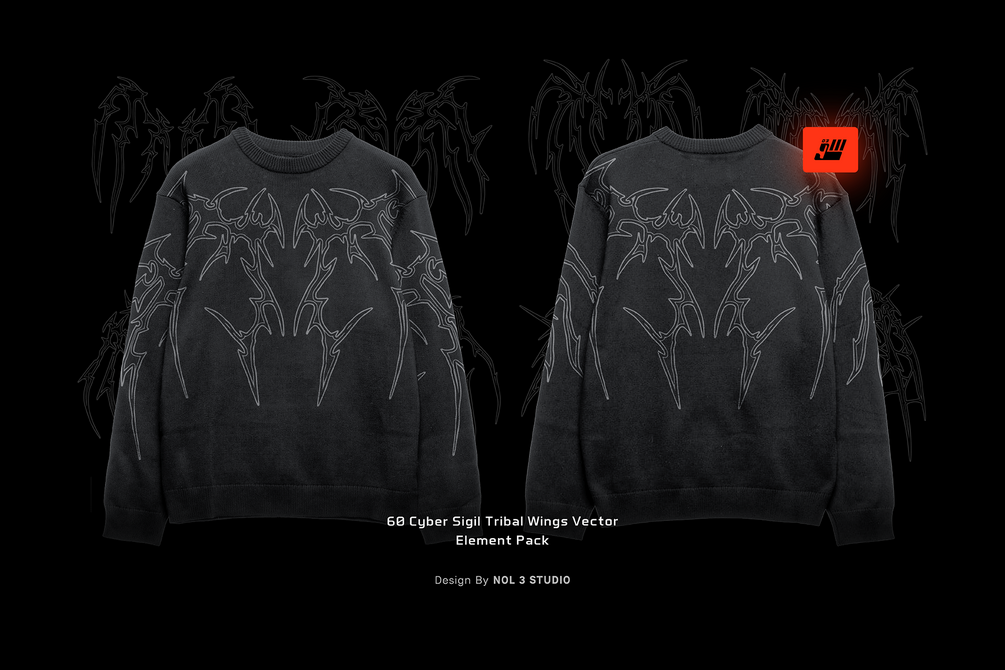 60 Cyber Sigil Tribal Wings Vector | Element pack