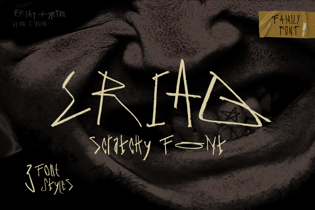 Eriaq is a scratchy handwriting font inspired by raw, rough handwriting and the gritty aesthetic of true crime movies. It features a family of three styles, each with unique freehand strokes for a natural feel. This bold and edgy font adds character to any project, making it perfect for expressive, urban designs.