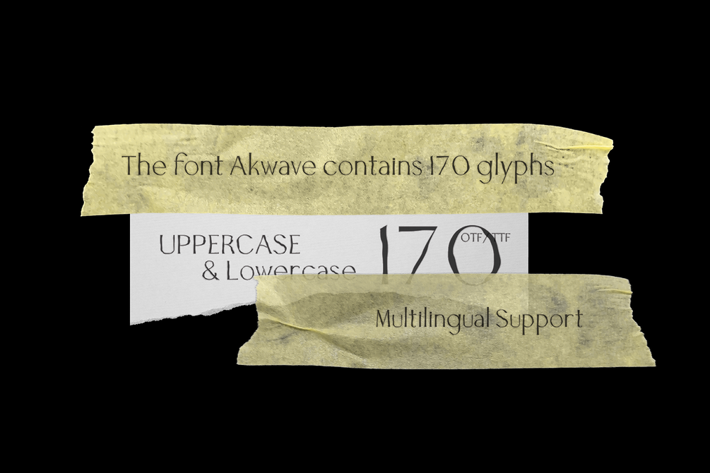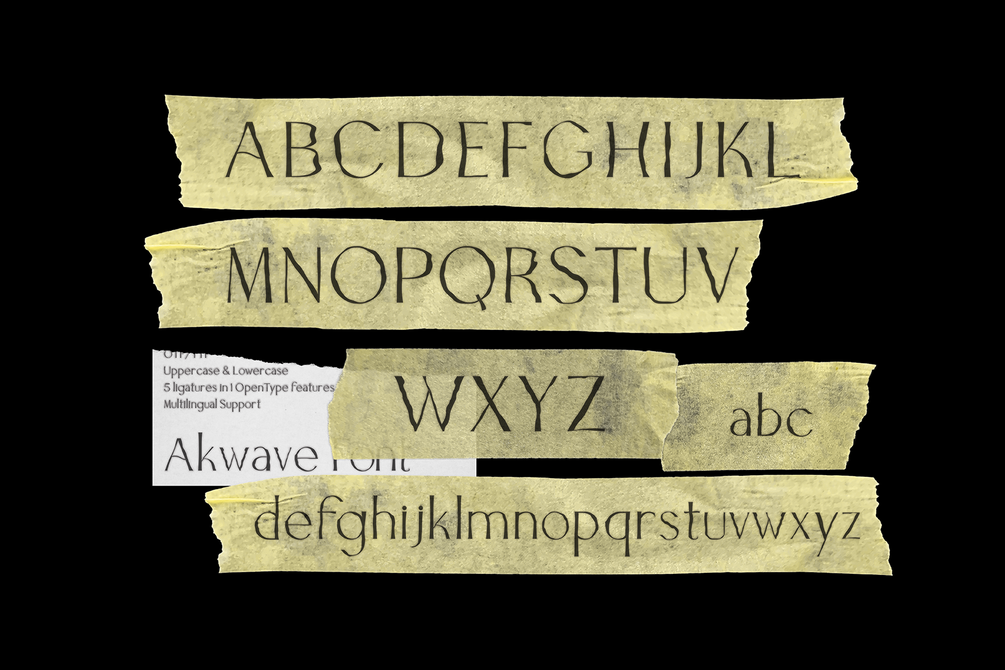 Akwave is an experimental display sans serif font inspired by the random textures of handwritten lettering. Featuring wavy accents that evoke the movement of ink, it offers a vibrant serif and artistic aesthetic. Ideal for creative projects, Akwave adds a unique touch to branding and headlines, capturing a sense of spontaneity.