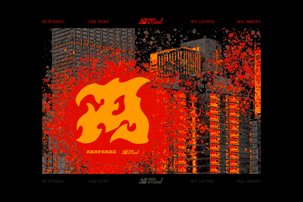 The Heatnado Font is a dynamic typeface inspired by fire, featuring hand-drawn lines that convey movement and energy. Its unique characters reflect the organic shapes of flames, making it ideal for bold projects. Additionally, the font includes bonus text effects that enhance its fiery aesthetic.